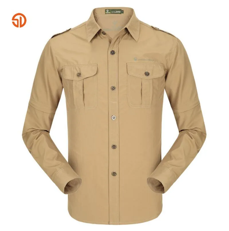 | SD Spring Summer Outdoors Camping Hiking Quick Drying Long-Sleeved Shirts Army Military Shirt anti-UV Detachable Sleeves MenTops |