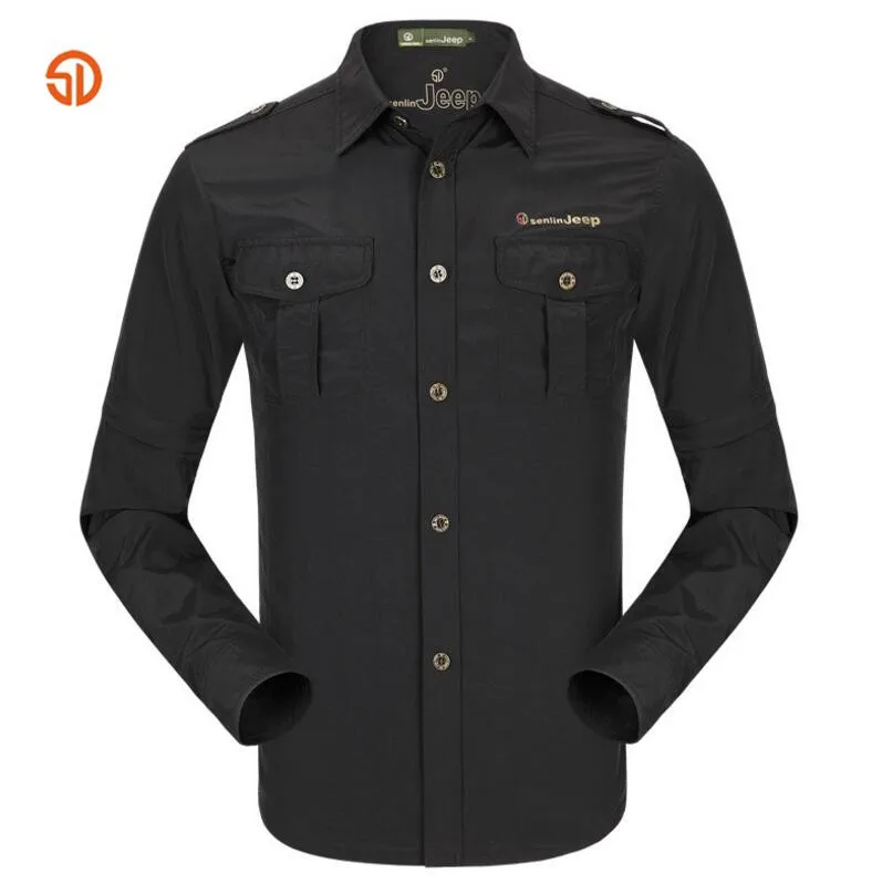 SD Spring Summer Outdoors Camping Hiking Quick Drying Long-Sleeved Shirts Army Military Shirt anti-UV Detachable Sleeves MenTops