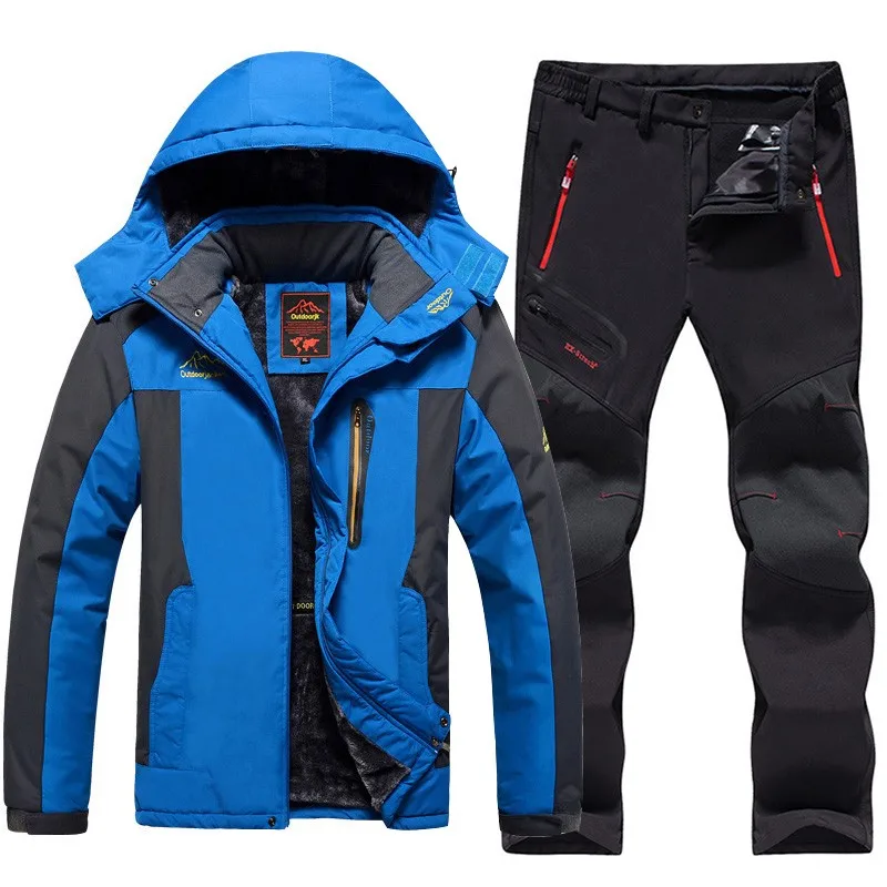 Winter Men Ski Jackets suits Waterproof Thermal Fleece Jackets + soft