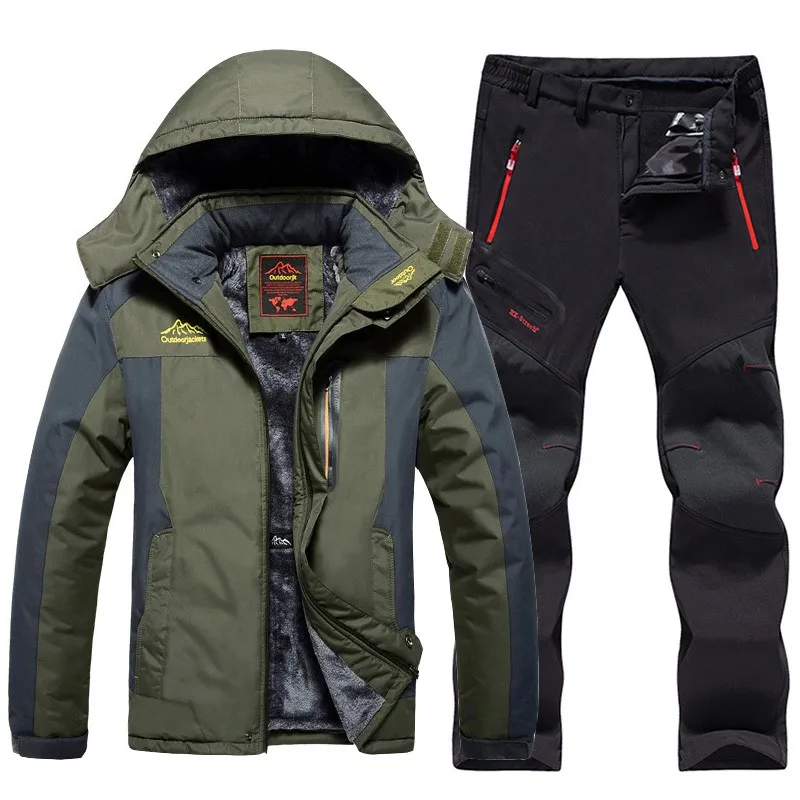 | Winter Men Ski Jackets suits Waterproof Thermal Fleece Jackets + soft shell Pants Outdoor Hiking Camping Snowboard Thicken Warm |