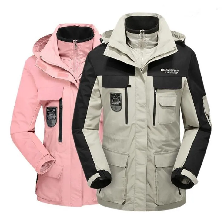 | 2019 Womens Winter 2 in 1 Inside Cotton-Paded Jackets Outdoor Sport Waterproof Thermal Hiking Ski Mountain Climbing Windbreaker |