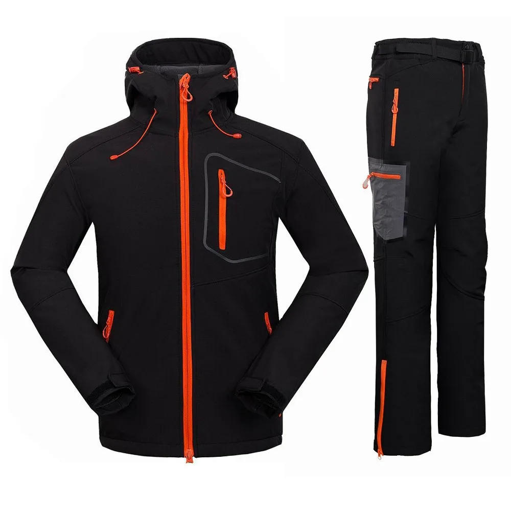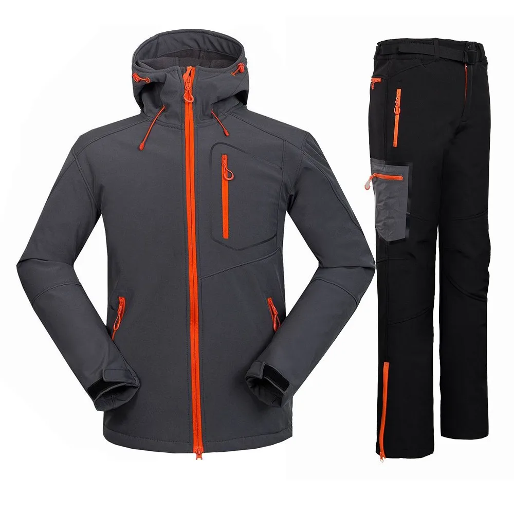 | 2020 Winter Waterproof Outdoor Climbing Mountain Hiking Jacket + Pants Fleece Softshell Camping Hunting Sports Suit for Men |