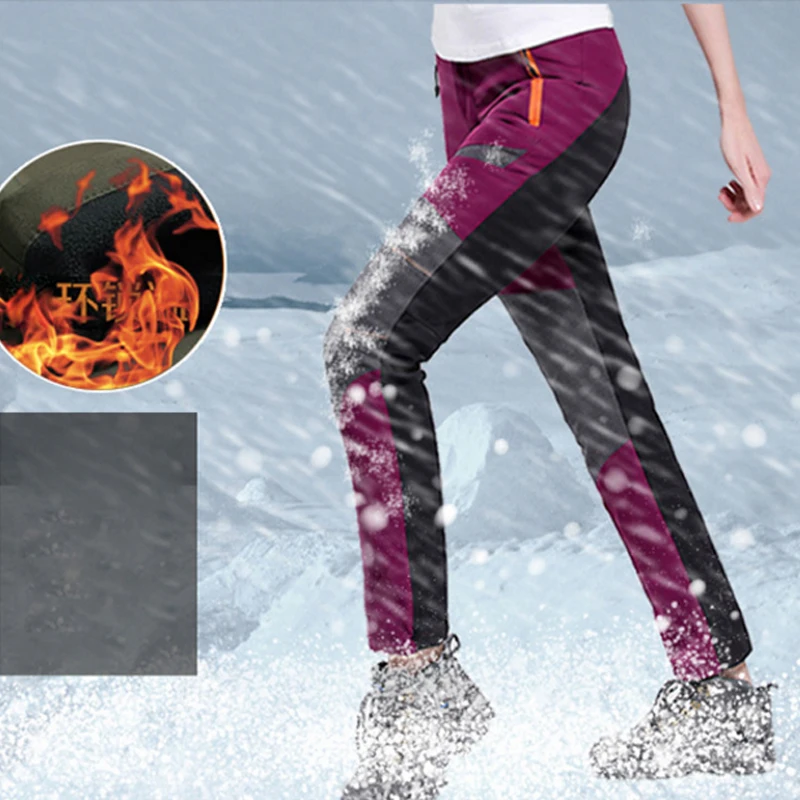 4XL Winter Autumn Skiing Trekking outdoor pants softshell Trouser Women hiking camping Sports Spliced Fleece Thermal Clothes P64