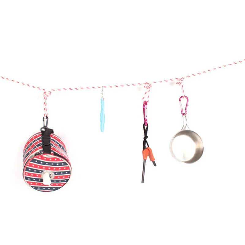 | Colorful Lanyard Tent Sling Clothesline Double Layer Clothes Rope with Bag for Outdoor Camping 10m Tent Rope Rriangle Buckle |