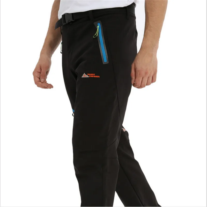 MOUNT CONQUER Winter Ski Tech Fleece Softshell Pants Men Waterproof Thermal Trousers Hiking Hunting Climbing Windproof Pants