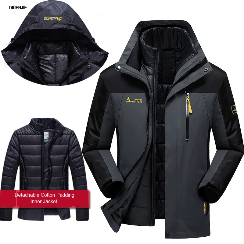 Oversize Men Winter Waterproof Fish Trekking Hiking Camp Ski Climb Warm Professional Outdoor 3 in 1 Cotton Jackets Coat Hood
