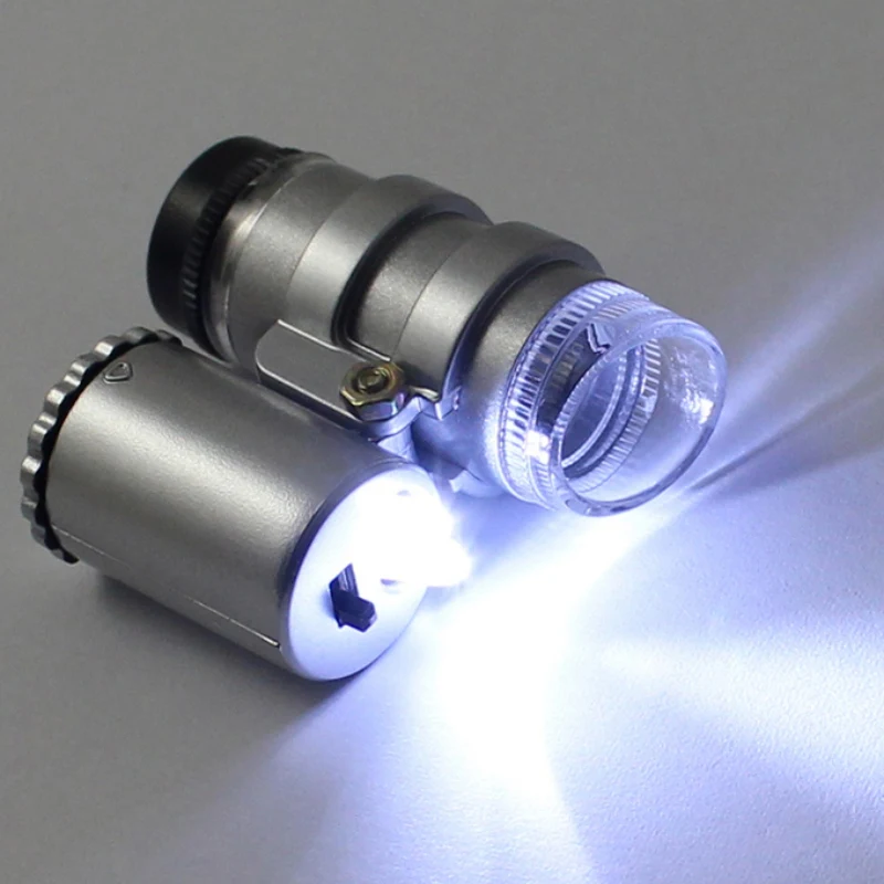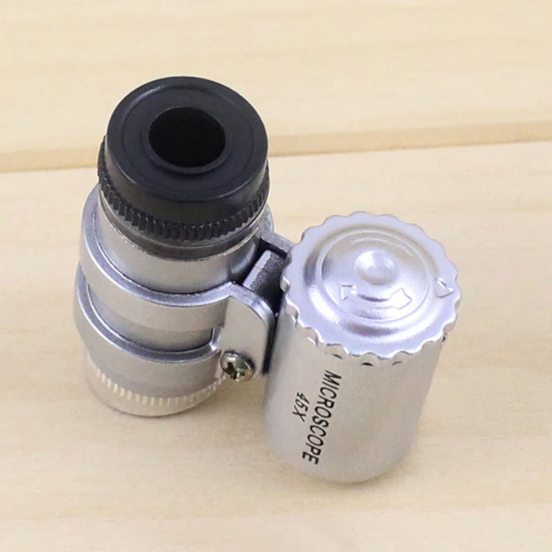 | 45X Pocket Microscope With LED Lamp Jeweler Loupe Lens Illuminated Magnifier Glass Seniors Loupe Jewelry Repair Tool |