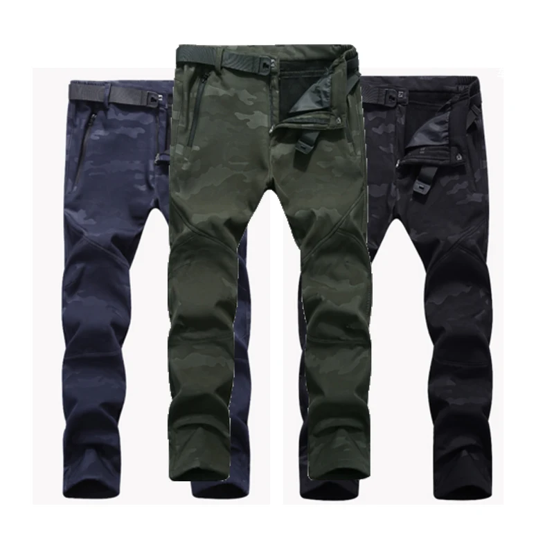 Men New Winter Waterproof Camping Trekking Hiking Climbing Skiing Fishing Pants Fleece Outdoor Softshell Trousers Camouflage