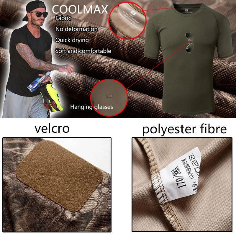 | Summer Short-Sleeve Camouflage T-shirt Men Quick Dry Army Tactical Combat T Shirt Cool Military Camping Hiking Hunting T-Shirts |