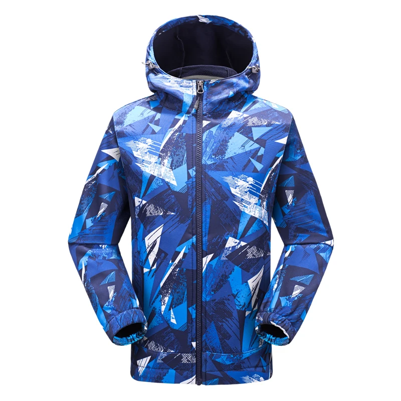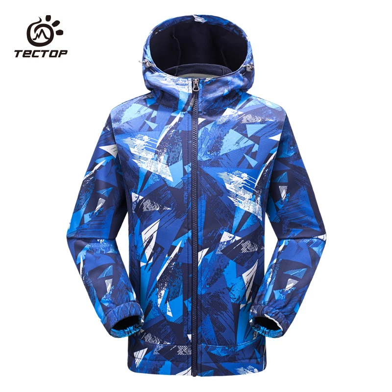 TECTOP Winter Kids Softshell Camouflage Outdoor Hiking Jacket Windproof Printing Soft Shell Childrens Hiking Jackets For Boys