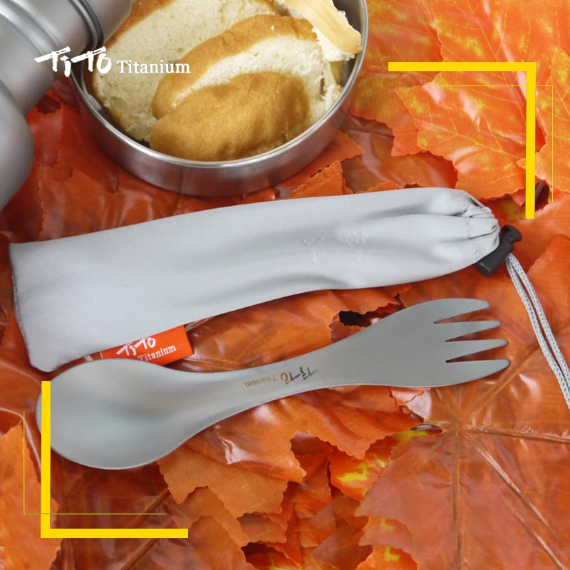 | TiTo Outdoor Camping Picnic Spoon Fork pure titanium Spoon Fork Ultralight Tableware Fork Spoon Durable 2 in 1Combo Cutlery Ute |