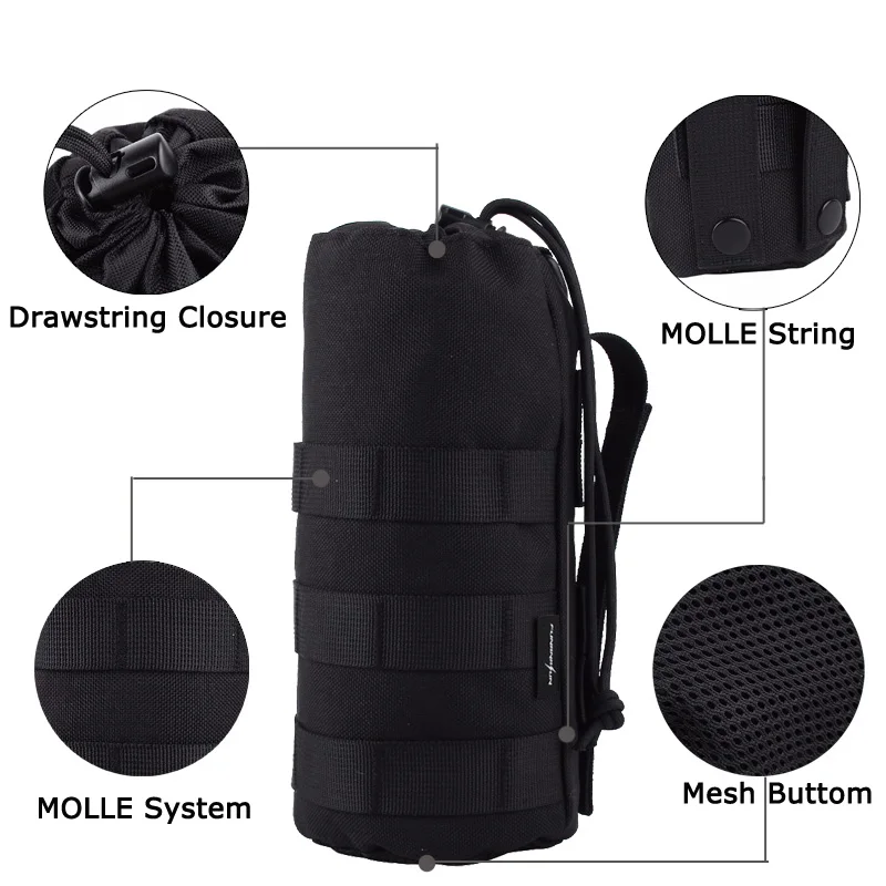 1.5L Portable Water Bottle Pouch Molle Camping Kettle Bags for Backpack