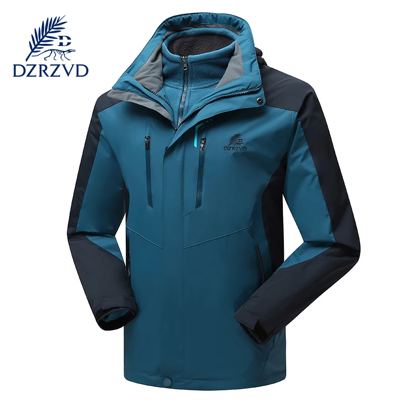 DZRZVD Autumn Winter Outdoor Ski Hiking Waterproof 2 in 1 Jacket Men