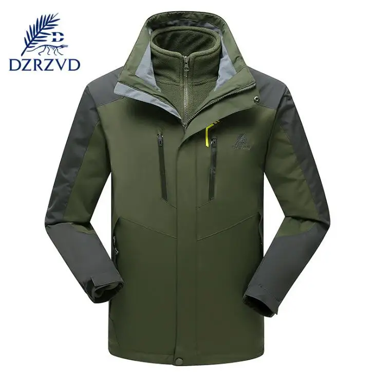 DZRZVD Autumn Winter Outdoor Ski Hiking Waterproof 2 in 1 Jacket Men Two-Piece Windproof Fleece Warm windbreaker Sports Coats