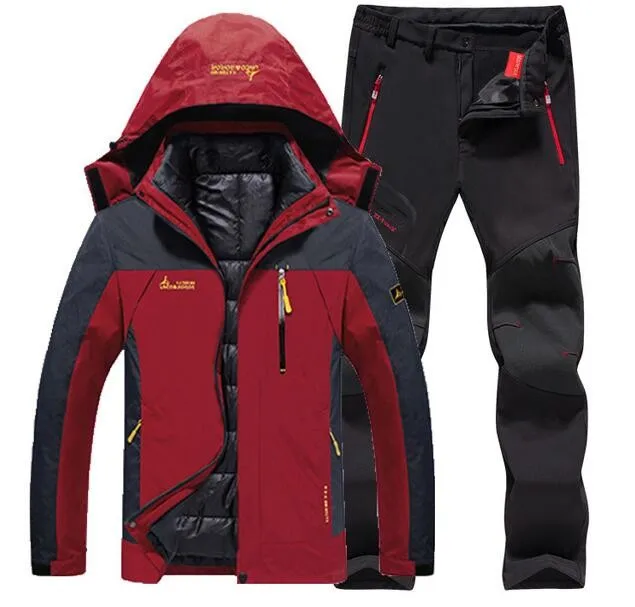 | Men Winter Ski Jackets Pant suit Outdoor Fishing Hiking Camping Waterproof Thermal 3 in 1 Jackets +Fleece pants set Plus Size6XL |