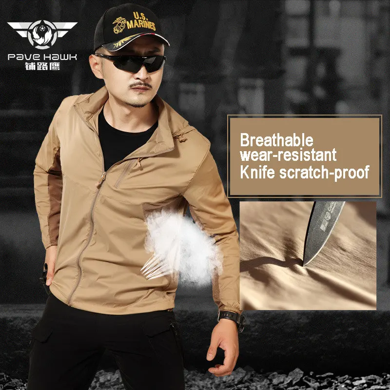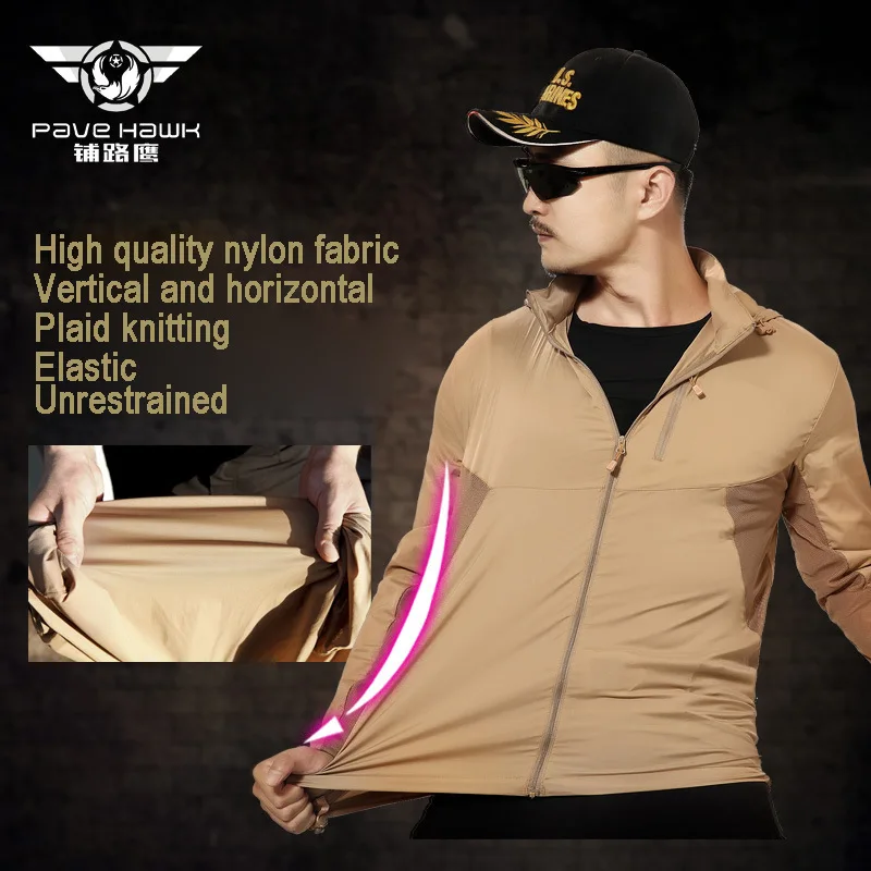 | PAVEHAWK Men Outdoor sport hiking fishing sun-protective jackets Waterproof and breathable Military Tactical Sunscreen Skin coat |