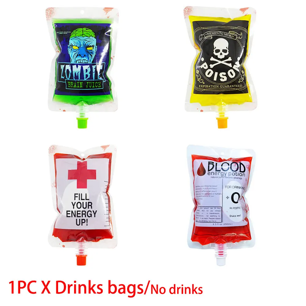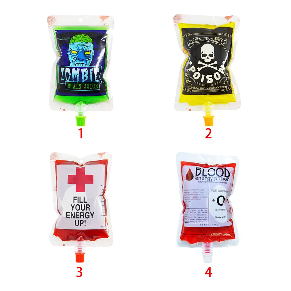 | Positive Energy Zombie Pouch Props Cosplay Blood Type Decors Drinks Water Bottle Halloween Drink Container Skull Beverage Bags |