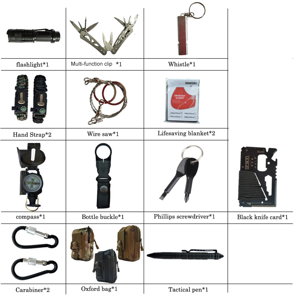 | 16 in 1 Outdoor survival kit Set Camping Travel First aid Supplies Tactical Multifunction SOS EDC Emergency for Wilderness tools |