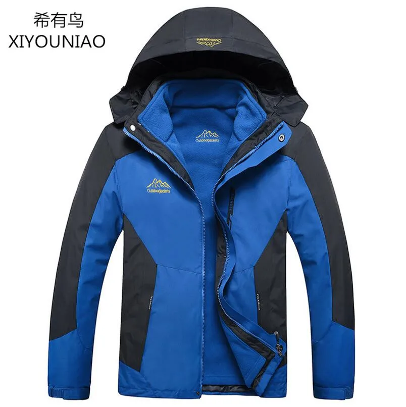 | 2017 Mens 2 Pieces Winter Inner Fleece Jacket Outdoor Sport Skiing Hiking Windproof keep Warm Windbreaker Coat Male Jackets 8XL |