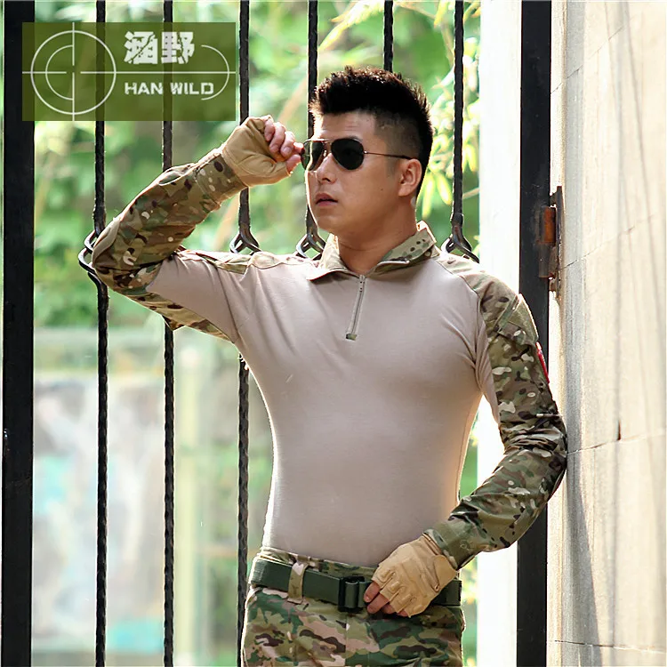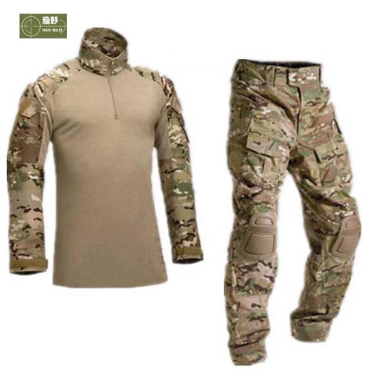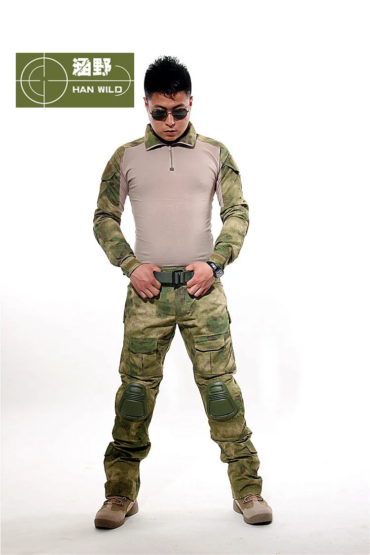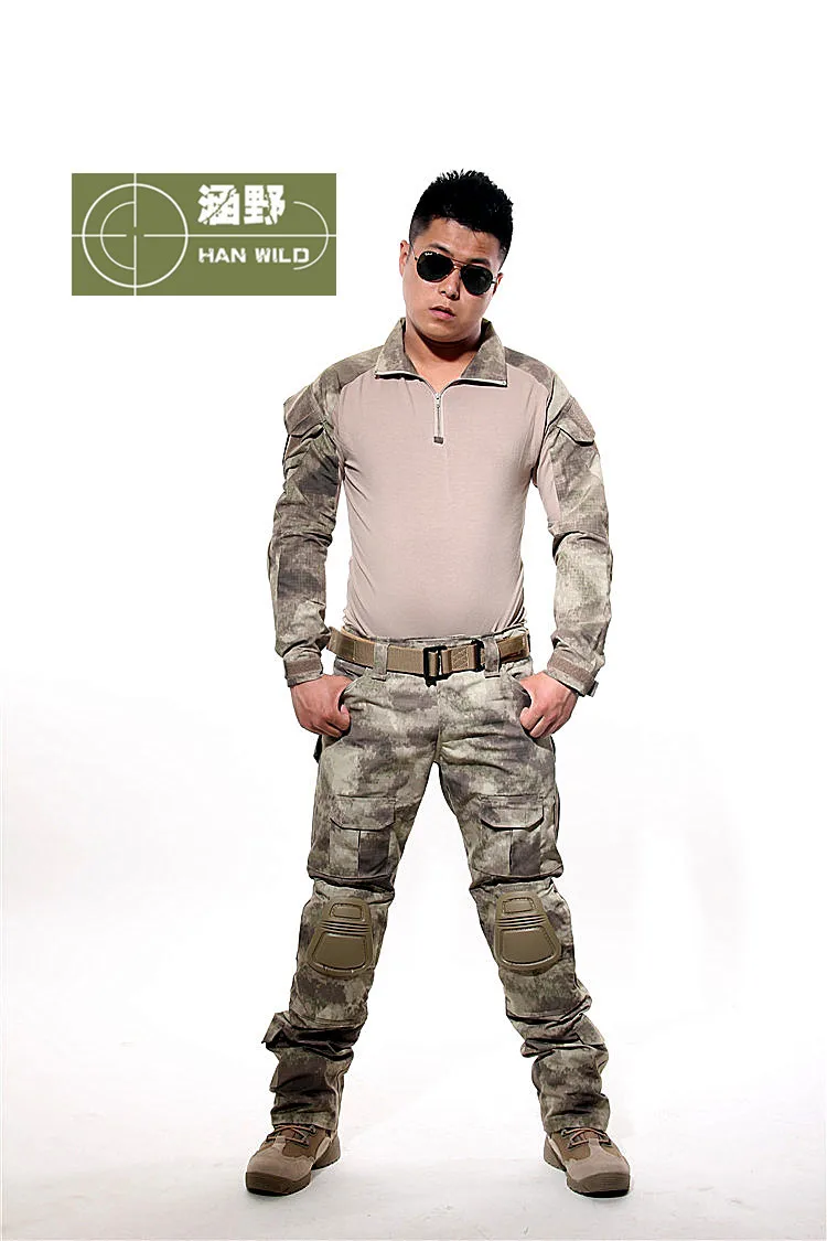 HANWILD Tactical Camouflage Hunting Sets Men Army Sport Multicam Hunting Clothes Set Outdoor Shirt + Pants Knee Pads Suits