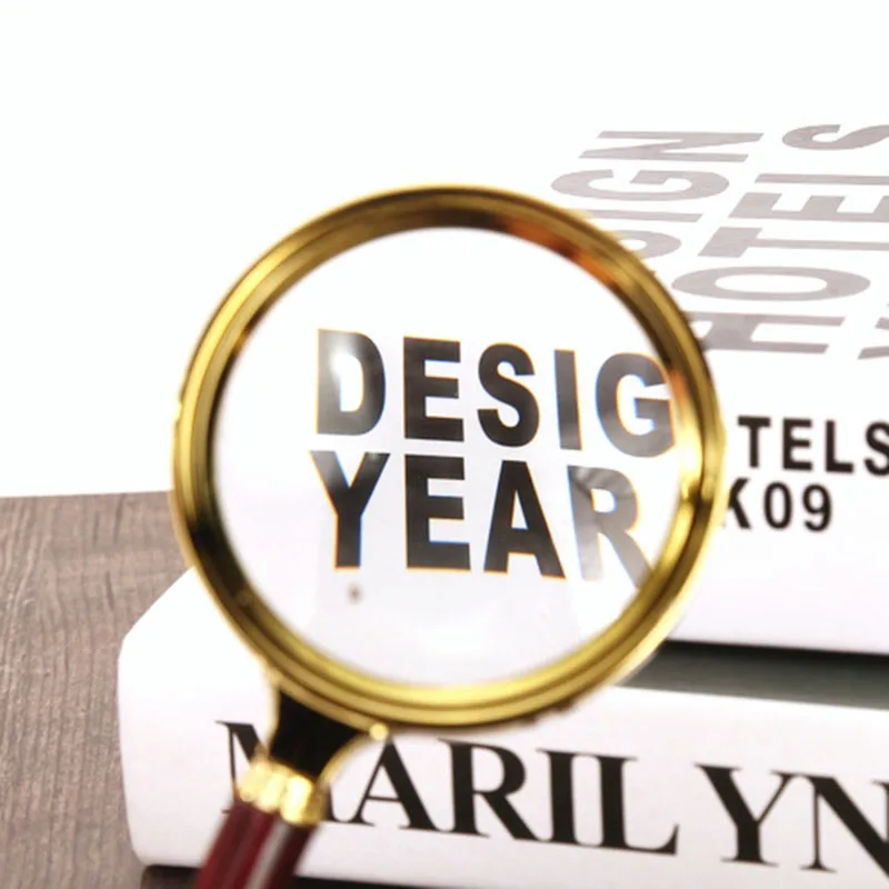 | New 10X Gold Tone Metal Frame Rosewood Handle Grip Magnifying Lens Glass Antique Mahogany Handle Magnifier Metal Reading |