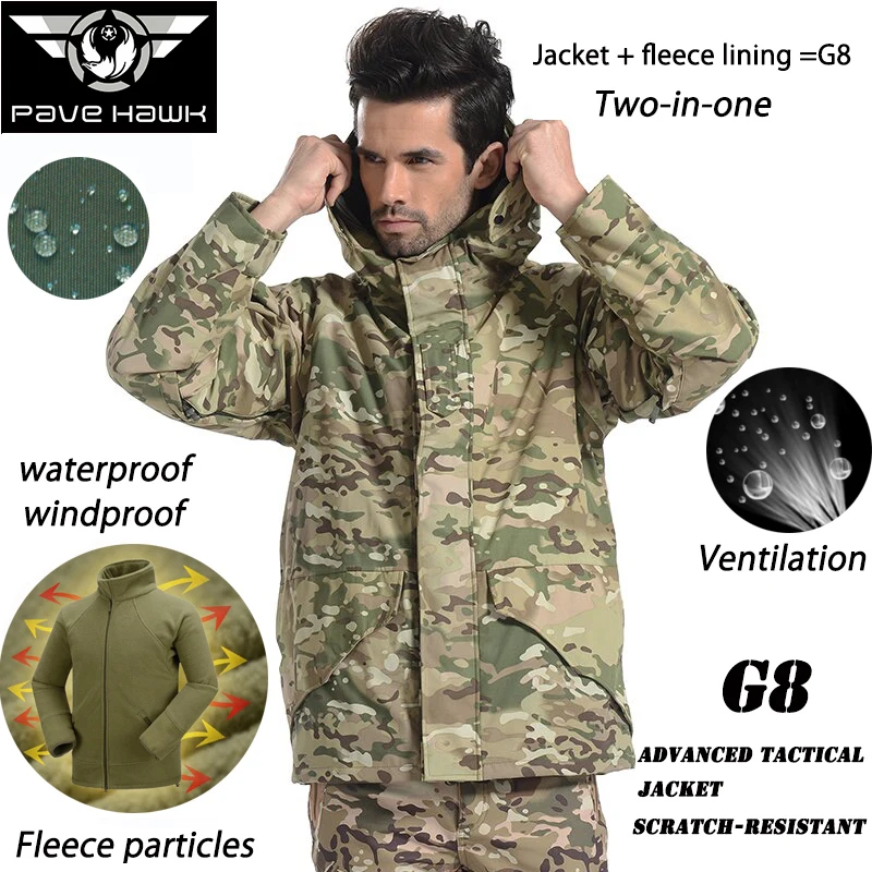 | 2020 G8 Uniform Rain Jackets Men Winter Fishing Hiking Tactical Waterproof Windproof Warm Camouflage 2 in1 Jacket Fleece Coat |