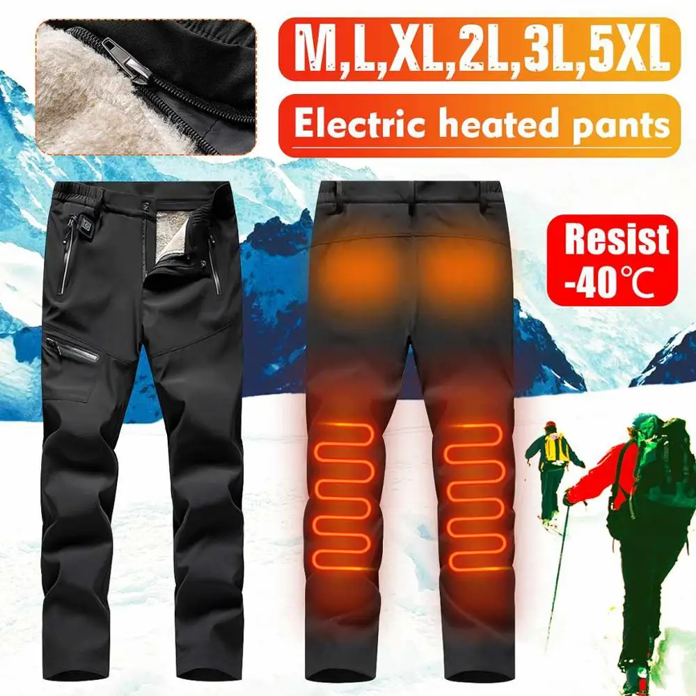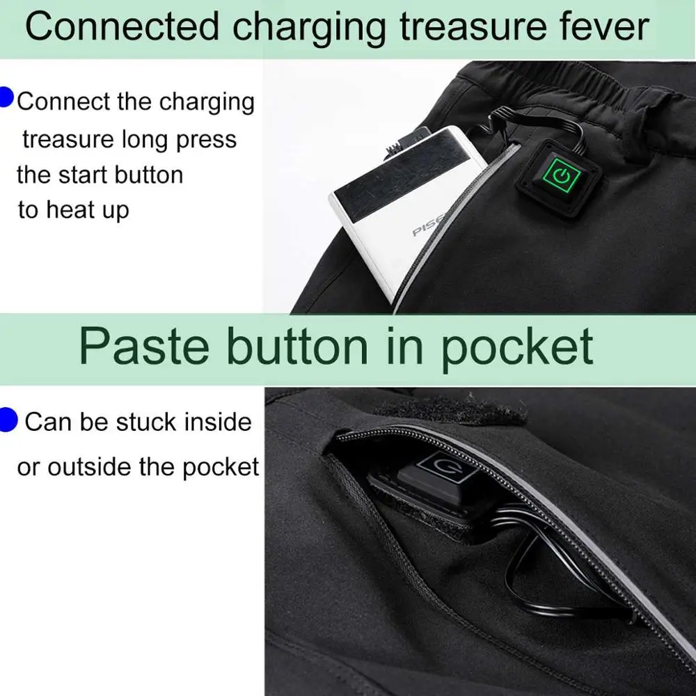 Men USB Electric Heating pant Winter Thick USB Intelligent Heated Warm Trousers Velvet Warm Knee Trousers Pant for Outdoor Sport