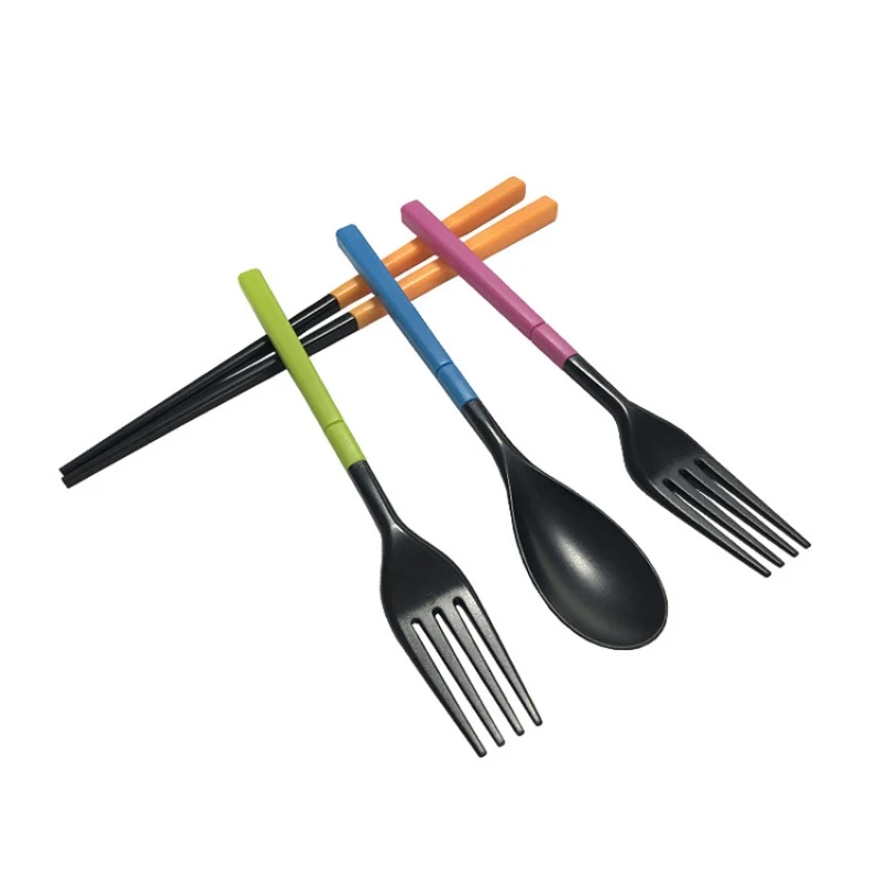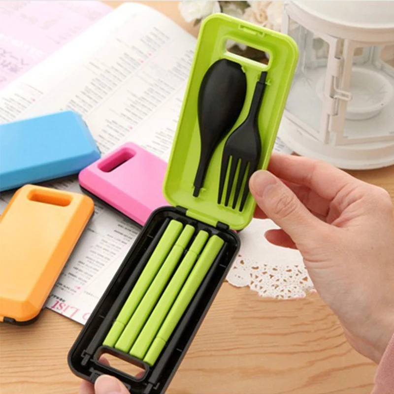 3 In 1 Folding Dinnerware Cutlery Fork Chopsticks Set With Storage Box