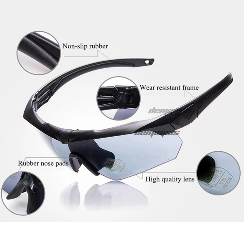 3 Lens Military Airsoft Shooting Glasses Polarized Army Tactical Glasses Outdoor Hunting Hiking Eyewear CS Wargame Goggles