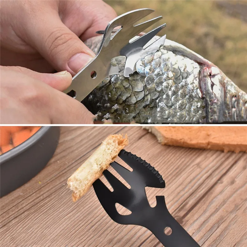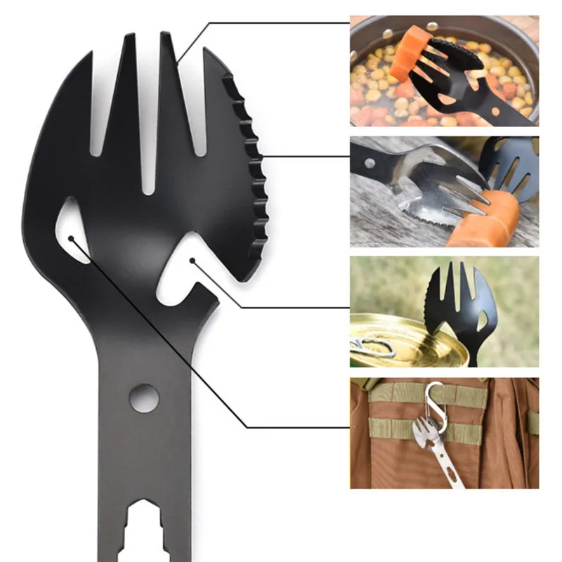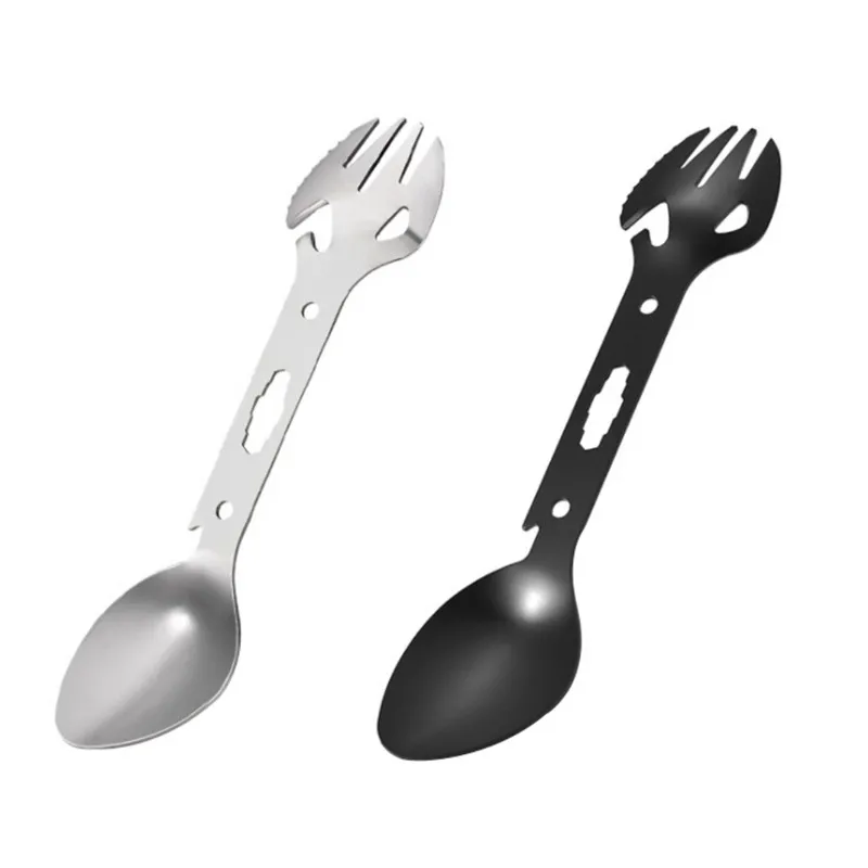 | 8 In1 Multi Function Camping Fork Spoon Picnic Gadget Spoon Fork Bottle Can Opener Stainless Steel Spork EDC Tool Y |