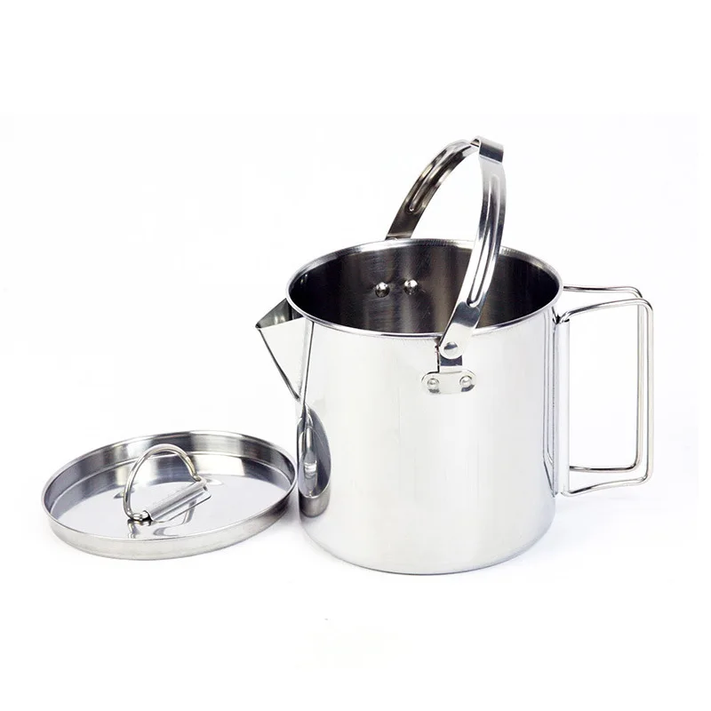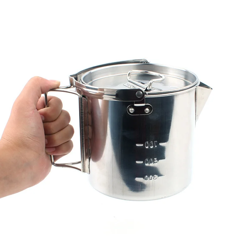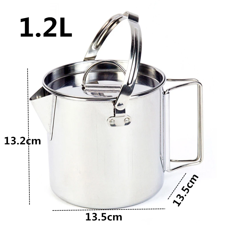 | VILEAD Stainless Steel 1.2L Outdoor Cooking Kettle Portable Camping Tableware Kettle BBQ Picnic Hiking Travel Tools Equipment |