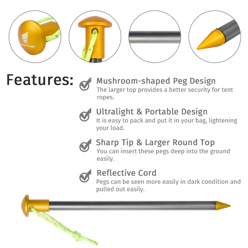 GeerTop Ultralight Round Top Tent Pegs Durable Heavy Duty Stakes Nails Camping Equipment Accessories Gear for Hiking Outdoor