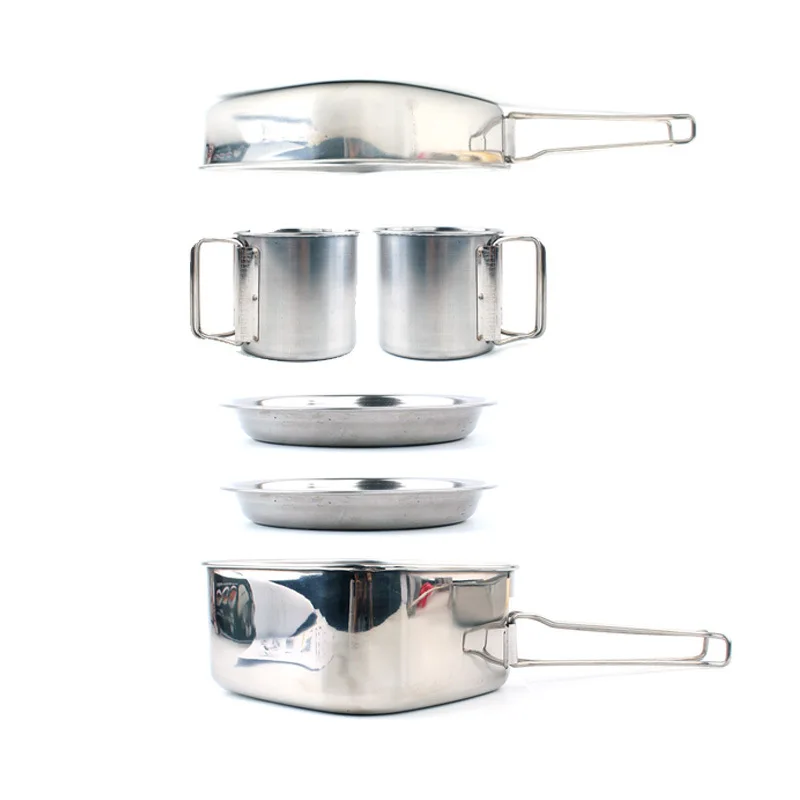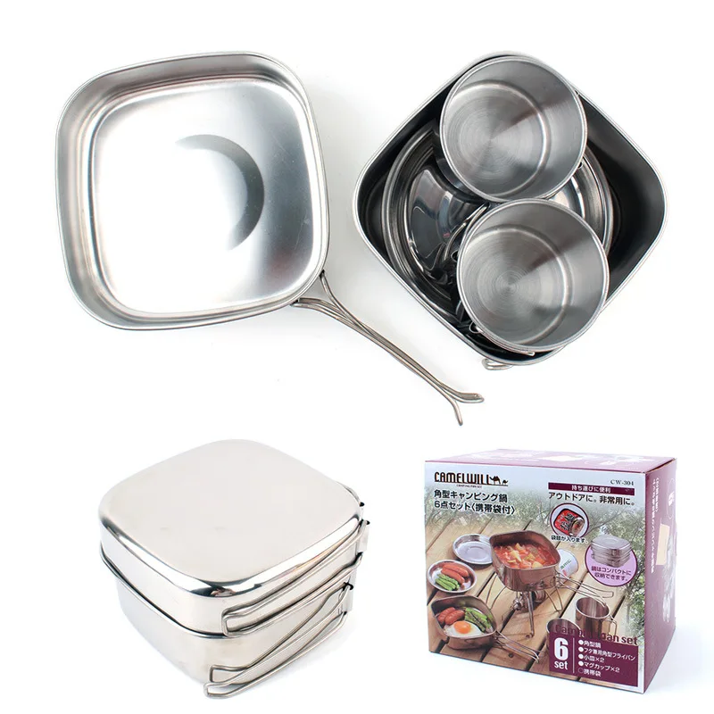 Outdoor 6-piece pot camping stainless steel cookware mountain climbing